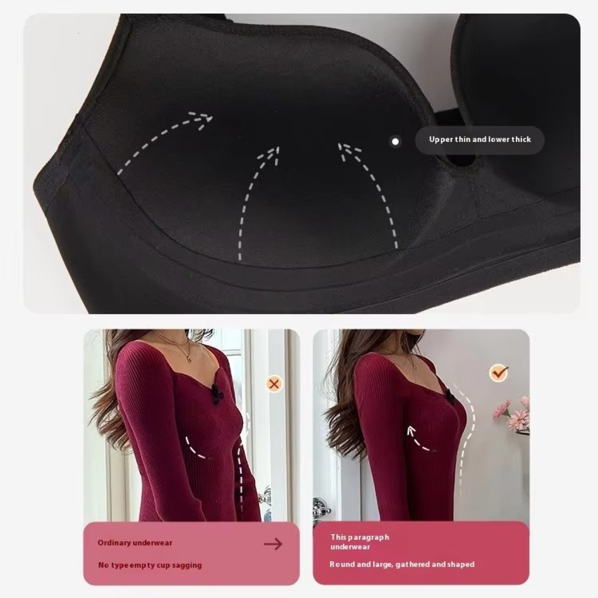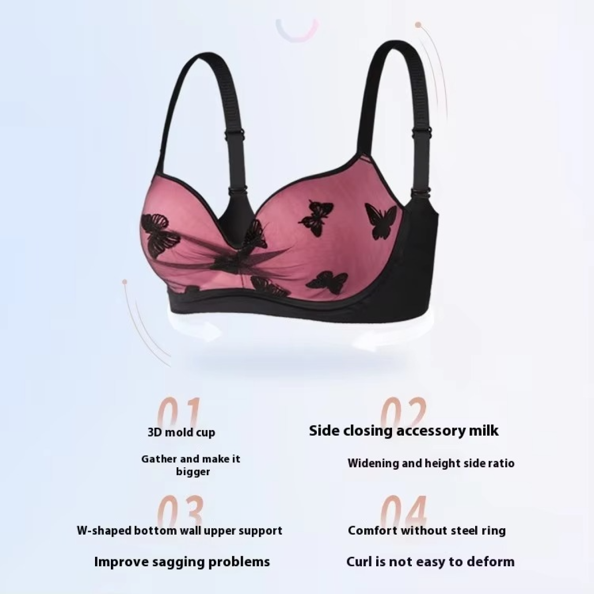 ✨ Wire-free & anti-sagging – light, comfy, and supportive